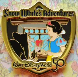 Snow White’s Adventures is a Limited Edition (LE) 2000 pin from the Walt Disney World 50th Anniversary Attraction Crests Collection pin series. It was originally released in October, 2021 and was available from Walt Disney World .