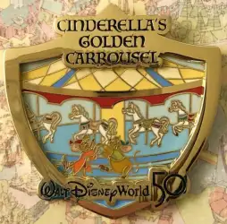 Cinderella’s Golden Carrousel is a Limited Edition (LE) 2000 pin from the Walt Disney World 50th Anniversary Attraction Crests Collection pin series. It was originally released in October, 2021 and was available from Walt Disney World .