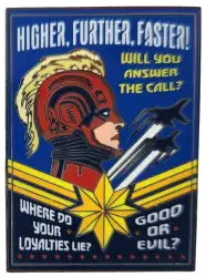 Captain Marvel is a Limited Edition (LE) 2000 pin from the Heroes vs Villains Pin Event - Recruitment Poster Series pin series. It was originally released on , 2021 and was available from Walt Disney World .