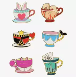Alice, mad hatter, Cheshire Cat, queen, white rabbit, March hare is an Open Edition pin from the Hot Topic - Alice In Wonderland Character Cups pin series. It was originally released in November, 2021 and was available from Loungefly .