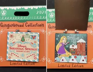 Disney's Saratoga Springs Resort & Spa is a Limited Edition (LE) 1500 pin from the Gingerbread House Collection 2021 pin series. It was originally released on , 2021 and was available from Disneyland Resort .