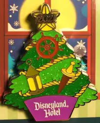 Disneyland Hotel - Peter Pan is a Limited Edition (LE) 1000 pin from the Resort Holiday Collection 2021: Christmas Trees pin series. It was originally released on , 2021 and was available from Disneyland Resort .
