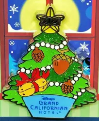 Grand Californian Hotel - Chip & Dale is a Limited Edition (LE) 1250 pin from the Resort Holiday Collection 2021: Christmas Trees pin series. It was originally released on , 2021 and was available from Disneyland Resort .
