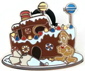 Donald Duck is a Limited Release pin from the Gingerbread Houses Mystery Collection pin series. It was originally released in November, 2021 and was available from Multiple Sources (WDW, DLR, etc.).