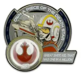Piece of the Death Star is a Limited Edition (LE) 1000 pin from the Star Wars Weekends 2012 pin series. It was originally released on , 2012 and was available from Walt Disney World .