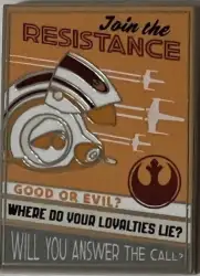 Star Wars Join the Resistance is a Limited Edition (LE) 2000 pin from the Heroes vs Villains Pin Event - Recruitment Poster Series pin series. It was originally released on , 2021 and was available from Walt Disney World .