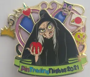 Old Hag with Apple is a Limited Edition (LE) 400 pin from the Pin Trading Nights 2021 pin series. It was originally released on , 2021 and was available from Hong Kong Disneyland .