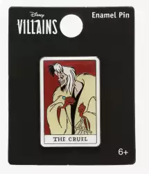 Cruella Tarot card is an Open Edition pin from the BoxLunch - Villain Tarot pin series. It was originally released on , 2021 and was available from Loungefly .