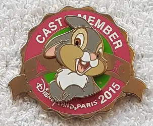 Thumper is a Limited Edition (LE) 3015 pin from the Cast Member - Disneyland Paris pin series. It was originally released on , 2015 and was available from Disneyland Resort Paris .