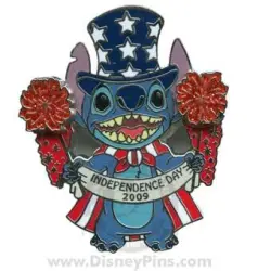 Stitch Independence Day is a Limited Edition (LE) 2750 pin from the 4th of July/Independence Day pin series. It was originally released on , 2009 and was available from Multiple Sources (WDW, DLR, etc.).