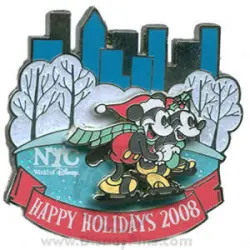 Happy Holidays 2008 - Mickey and Minnie is a Limited Edition (LE) 1000 pin from the Christmas 2008 pin series. It was originally released on , 2008 and was available from Disney Store US .