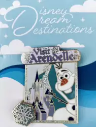 Olaf - Visit Arendelle is a Limited Edition (LE) 2500 pin from the Disney Dream Destinations pin series. It was originally released on , 2021 and was available from Disneyland Resort .
