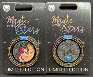 Hercules and Meg is a Limited Edition (LE) 4000 pin from the Magic in the Stars Astrological Sign Series pin series. It was originally released on , 2021 and was available from Multiple Sources (WDW, DLR, etc.).