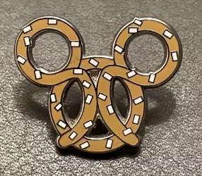 Pretzel is an Open Edition pin in the Snacks 2-pin set from the Mickey Mouse Icons pin series. It was originally released on , 2010 and was available from Multiple Sources (WDW, DLR, etc.).