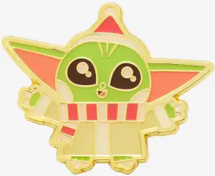 The Child or Grogu with Scarf and Santa Hat is an Open Edition pin from the BoxLunch - Holiday pin series. It was originally released on , 2021 and was available from Loungefly .