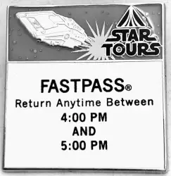 Star Tours is a Limited Edition (LE) 200 pin from the Disneyland Fastpass pin series. It was originally released on , 2009 and was available from Walt Disney Imagineering .