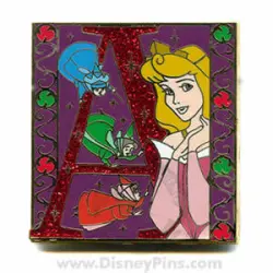 A is for Aurora is an Open Edition pin from the Disney Parks - Storybook Initial pin series. It was originally released on , 2007 and was available from Multiple Sources (WDW, DLR, etc.).