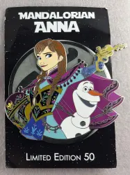 Anna - Mandalorian is a Limited Edition (LE) 50 pin from the Fantasy Pin Series: Princess Mandalorian pin series. It is an Unlicensed (Fantasy) pin, so therefore it is not allowed to be traded in the Disney Parks.