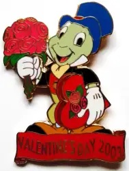 DLR - Valentines' Day 2003 - Jiminy Cricket is a Limited Edition (LE) 2000 pin from the Valentine's Day pin series. It was originally released on , 2003 and was available from Disneyland Resort .