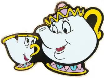 Pin features Mrs. Potts and Chip from Beauty and the Beast