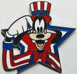 Goofy Only Patriotic star is an Open Edition pin from the Mickey Mouse & Friends Patriotic Pin Trading Starter Set pin series. It was originally released in July, 2017 and was available from Multiple Sources (WDW, DLR, etc.).