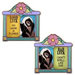 Flower is a Limited Edition (LE) 1000 pin from the Good Luck, Bad Luck Slider Series pin series. It was originally released on , 2013 and was available from Walt Disney World .