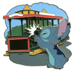 Stitch Taking Photo of Main Street Trolley is a Limited Edition (LE) 1800 pin from the Stitch Adventure Collection pin series. It was originally released on , 2010 and was available from Multiple Sources (WDW, DLR, etc.).