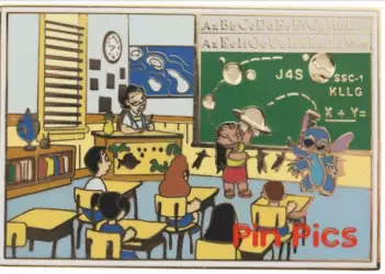 Stitch & Lilo - Post Card #4 - Show N’ Tell is a Limited Edition (LE) 250 pin from the Stitch Postcard pin series. It was originally released on , 2006 and was available from Disney Store US .