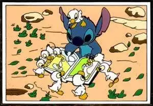 Stitch - Post Card #5 - Stitch with ducklings is a Limited Edition (LE) 250 pin from the Stitch Postcard pin series. It was originally released on , 2006 and was available from Disney Store US .