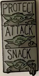 Protect Attack Snack - The Child Grogu is an Open Edition pin from the Star Wars: The Mandalorian pin series. It was originally released on , 2020 and was available from an Officially Licensed Disney trading pin vendor (see description for more information).