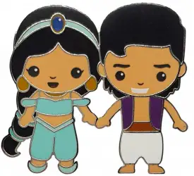 Jasmine with Prince Aladdin is an Open Edition pin from the Cutie Couples pin series. It was originally released on , 2017 and was available from Disneyland Resort Paris .