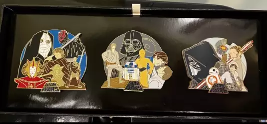 Star Wars Cluster Set of 3 Pins is a Limited Edition (LE) 3000 pin from the Star Wars Movie Character Cluster Pin Set pin series. It was originally released on , 2022 and was available from Multiple Sources (WDW, DLR, etc.).