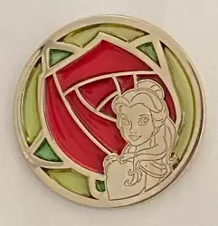 Belle is a Limited Edition (LE) 250 pin from the Beauty and the Beast Stained Glass pin series. It was originally released on , 2021 and was available from Disneyland Resort Paris .