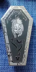 Cruella De Vil is an Open Edition pin from the 2012 Hidden Mickeys - Villain Coffins pin series. It was originally released in January, 2012 and was available from Disneyland Resort .