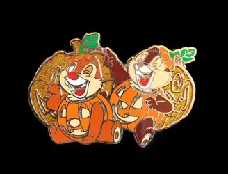 Chip & Dale as Pumpkins is an Open Edition pin from the Halloween pin series. It was originally released on , 2006 and was available from Tokyo Disneyland Resort .
