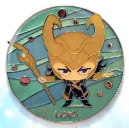 Loki - Round Cutie Style is an Open Edition pin from the Marvel Avengers pin series. It was available from Hong Kong Disneyland .