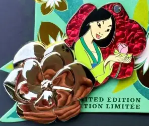 Mulan is a Limited Edition (LE) 4000 pin from the Beautiful Florals pin series. It was originally released on , 2022 and was available from Multiple Sources (WDW, DLR, etc.).