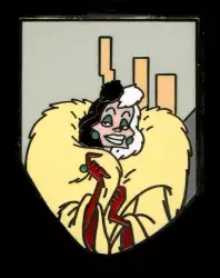Cruella DeVil is an Open Edition pin from the 101 Dalmatians Booster Collection pin series. It was originally released on , 2009 and was available from Multiple Sources (WDW, DLR, etc.).