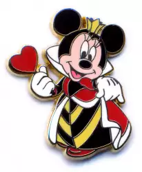 Minnie Mouse as the Queen of Hearts is a Limited Edition (LE) 1000 pin from the Halloween 2006 Happy Trick Party 5 Pin Set pin series. It was originally released on , 2006 and was available from Disney Store Japan .