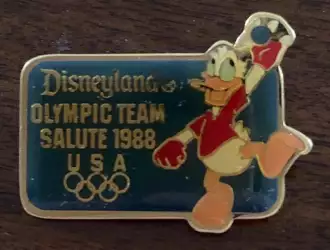 Donald Duck (Handball) is an Open Edition pin from the 1988 Summer Olympics pin series. It was originally released on , 1988 and was available from Disneyland Resort .