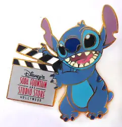 Stitch with Clapboard - Disney Soda Fountain logo is a Limited Edition (LE) 500 pin from the Lilo & Stitch pin series. It was originally released in March, 2006 and was available from Disney Studio Store Hollywood / Soda Fountain .