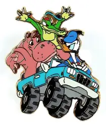 Donald Duck, Hyacinth Hippo and Ben Ali Gator Riding in a Blue Truck is an Open Edition pin from the All Roads Lead to the Happiest Homecoming on Earth pin series. It was originally released on , 2005 and was available from Disneyland Resort .