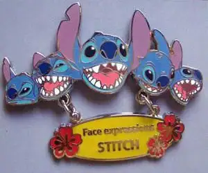 Stitch is a Limited Edition (LE) 1700 pin from the Face Expressions pin series. It was originally released on , 2005 and was available from Disney Store Japan .