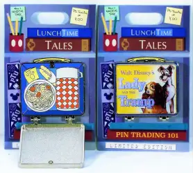 Lady and the Tramp is a Limited Edition (LE) 1500 pin from the Lunch Time Tales pin series. It was originally released on , 2018 and was available from Walt Disney World .