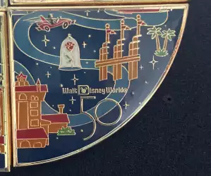 Bottom right piece is an Open Edition pin from the BoxLunch - Walt Disney World Resort 50th Anniversary Map Mystery Collection pin series. It was originally released on , 2022 and was available from Loungefly .