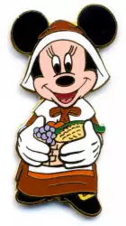 Pilgrim Minnie holding a Basket of Fruit is a Limited Edition (LE) 100 pin from the Thanksgiving pin series. It was originally released on , 2001 and was available from Disney Auctions .
