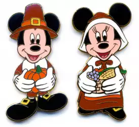 Pilgrim Mickey & Minnie is a Limited Edition (LE) 100 pin from the Thanksgiving pin series. It was originally released on , 2001 and was available from Disney Auctions .