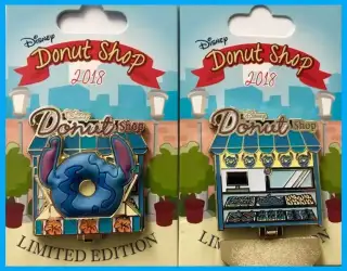 Stitch is a Limited Edition (LE) 3000 pin from the Disney Donut Shop Series pin series. It was originally released on , 2018 and was available from Multiple Sources (WDW, DLR, etc.).