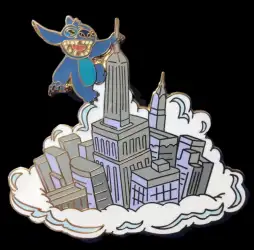 Stitch on Skyscraper - New York City (NYC) is an Open Edition pin from the Lilo & Stitch pin series. It was originally released on , 2004 and was available from Multiple Sources (WDW, DLR, etc.).