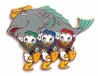 Huey, Dewey, & Louie Carrying a Large Green Fish is a Limited Edition (LE) 1000 pin from the Disney Store Japan 10th Anniversary - Celebration pin series. It was originally released on , 2010 and was available from Disney Store Japan .
